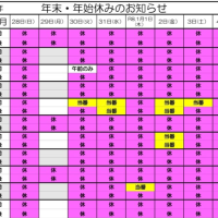 富士薬局各店舗 年末年始のおしらせ